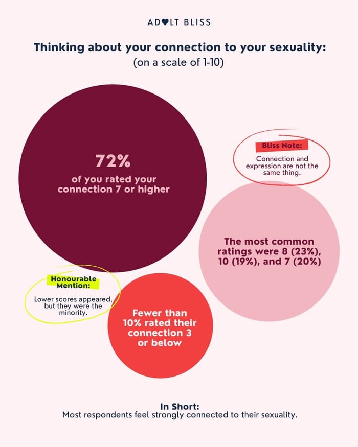 Sexual pleasure is a huge part of human identity, and the data makes that crystal clear. With over 70% of respondents rating its importance at an 8, 9, or 10 out of 10, pleasure isn’t just a “nice to have”, it’s a priority.