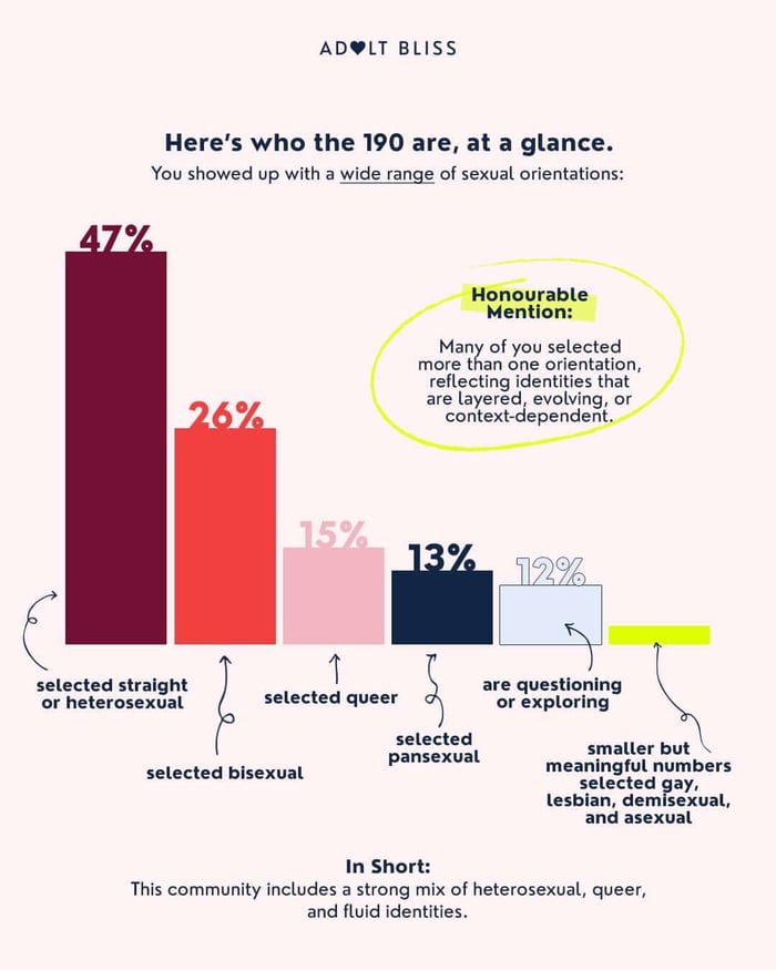 And a special shout-out to the 15% who said they’re exploring or unsure, we love this energy. No labels, no pressure, just doing what feels right in the moment. Exploration is a core part of being human, and making space for that curiosity is something worth celebrating.